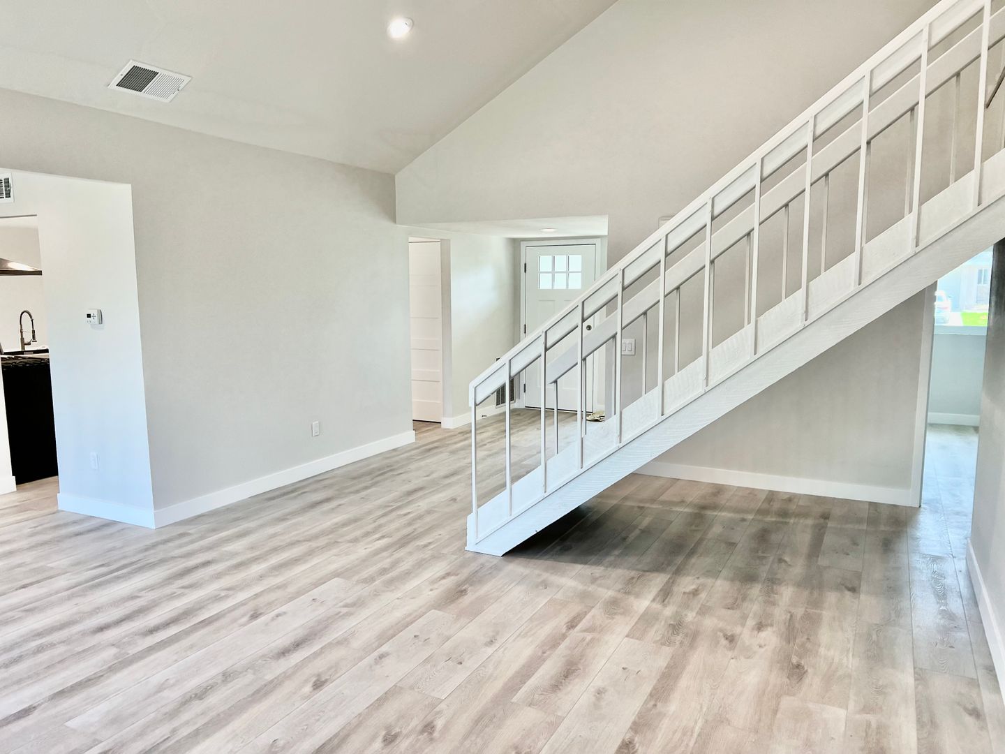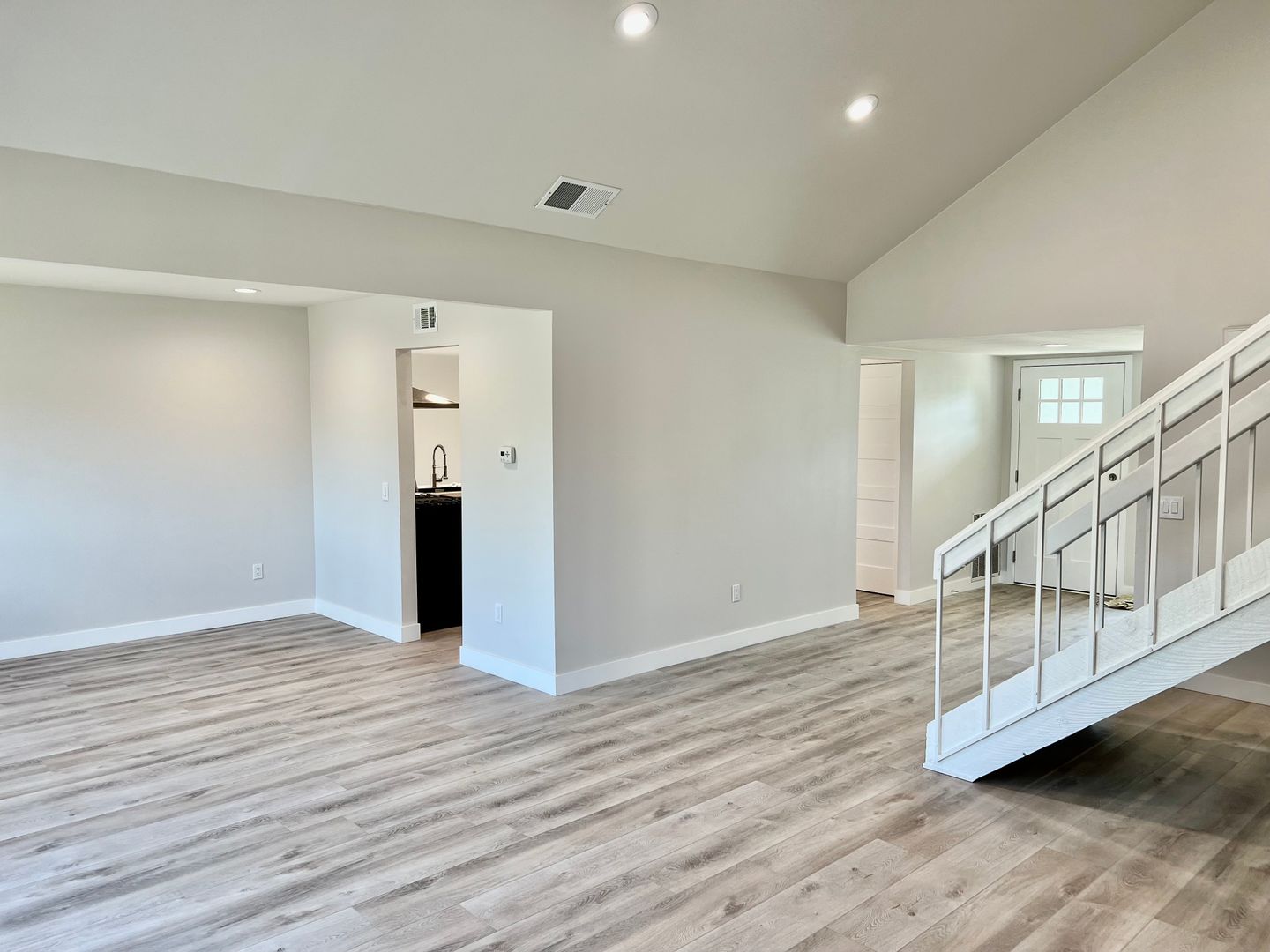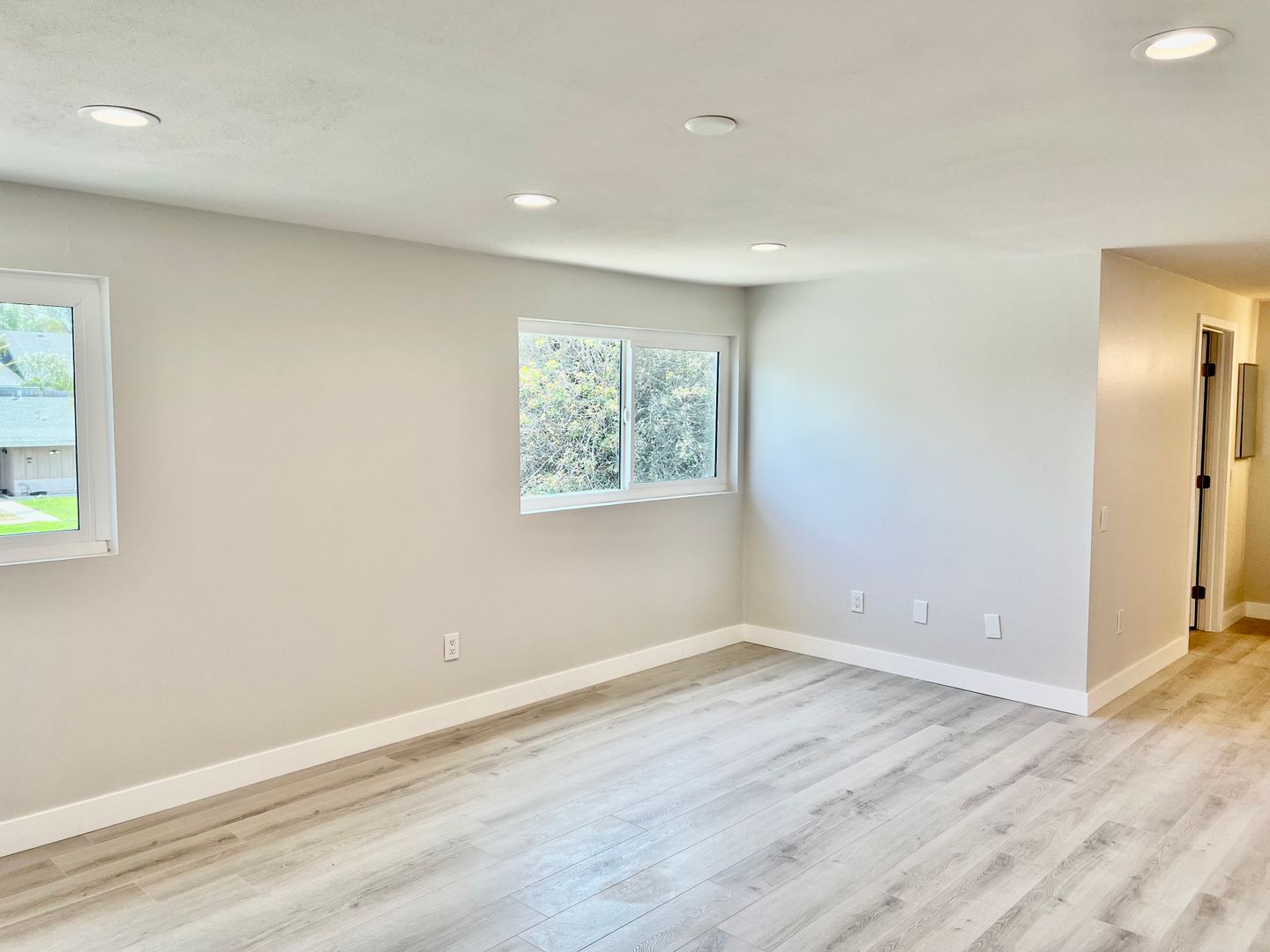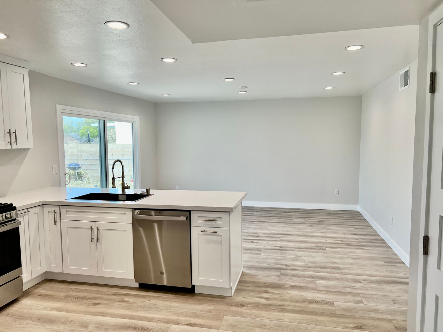 This home is a 5 bedroom, 2 bath home & has been completely remodeled. Three of the bedrooms are located downstairs. The upstairs features primary suite & bedroom #5. Living room has vaulted ceiling & fireplace, formal dining room & family room. Kitchen has been completely redesigned & features large pantry, quartz counter tops, stainless steel appliances. New flooring throughout home. Both bathrooms have been remodeled. New dual pane windows throughout. There is an office in the garage. Exterior of home freshly painted & much more.