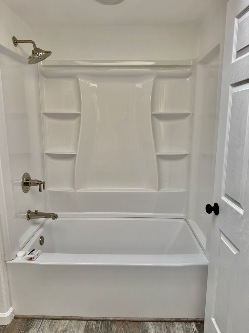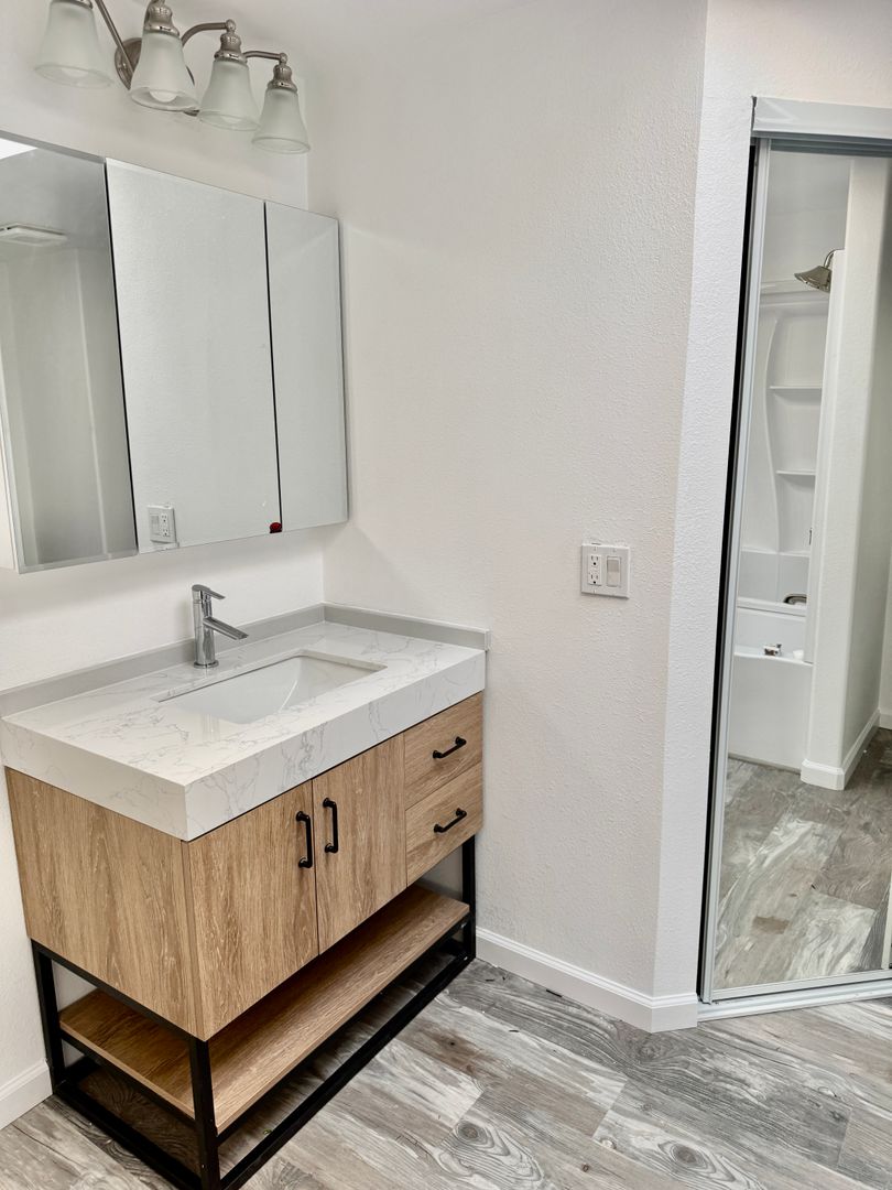 The updated manufactured home features a complete modern remodel, including a brand-new kitchen and bathrooms, recessed lighting, updated windows and doors, and stylish new flooring throughout. The interior offers a clean, contemporary feel with plenty of natural light.